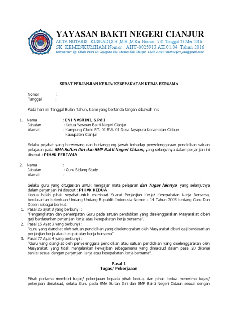 Perjanjian Kontrak Kerja Yayasan Pdf
